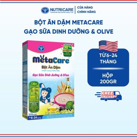 Bột Ăn Dặm NUTRICARE Metacare Gạo Sữa Dinh Dưỡng & Olive Hương Vị Thơm Ngon Giúp Bé Ăn Ngon Hơn và Hấp Thu Tốt 200G